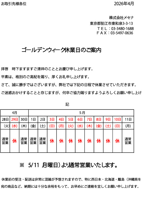 GW休業日のご案内